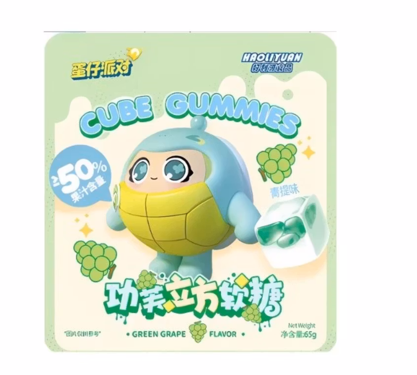 Haoliyuan Egg Party Green Grape Filled Cube Gummies 24 x 65g